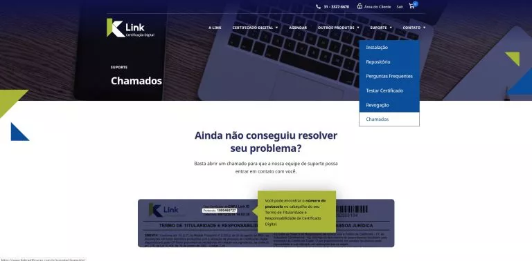 Mas atenção: você precisa ter em mãos o número de protocolo, que está no cabeçalho do seu Termo de Titularidade e Responsabilidade de Certificado Digital.