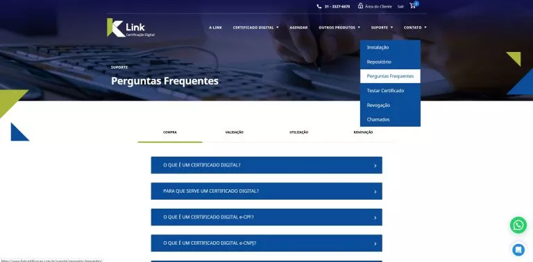 Também pelo nosso site, ainda no menu de Suporte, você pode conferir uma lista de dúvidas frequentes que podem aparecer, desde o momento da compra até o processo de renovação do seu certificado digital. Não deixe de conferir se a sua dúvida está nessa lista!